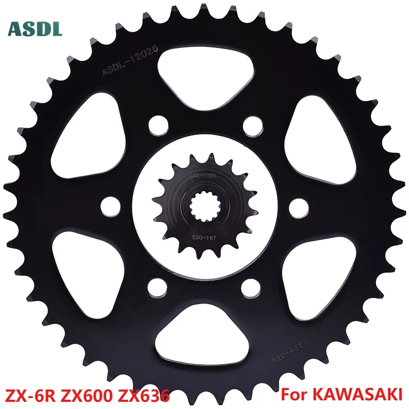 Передняя и задняя звездочка мотоцикла 520 16T 43T для Kawasaki ZX-6R ZX600 ZX 600 ZX636 ZX 6R Ninja 600 KRT 2007-2024 ZX6R Performance