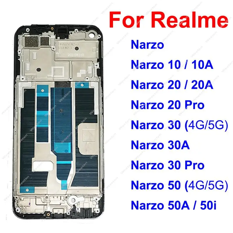 Передняя рамка, Корпус ЖК-дисплея для Realme Narzo 50 30 20 10 Pro 50i 50A Prime 30A 20A 10A 4G, деталь переднего держателя ЖК-экрана