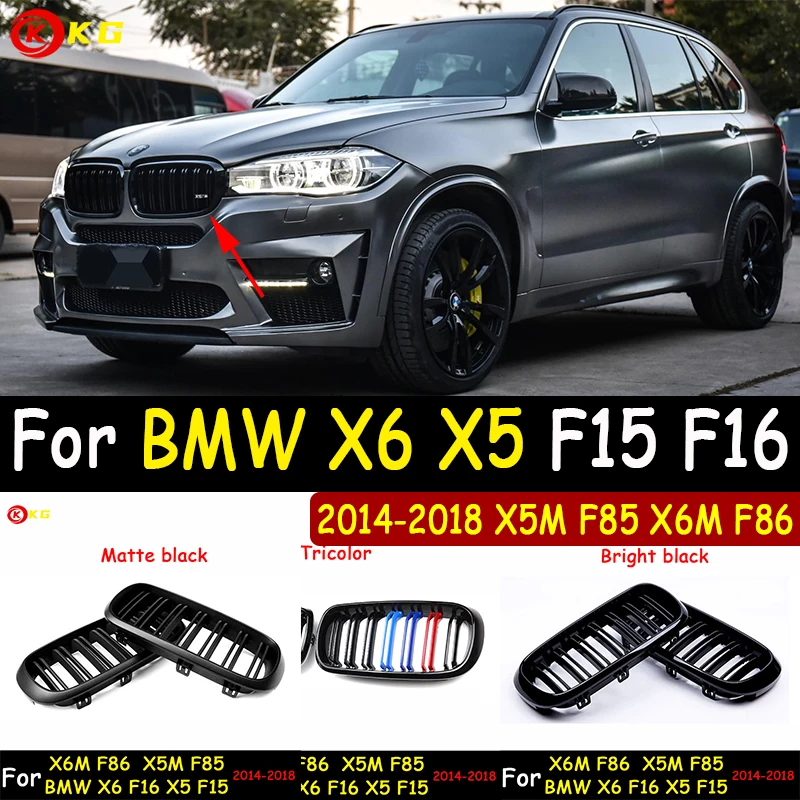 Передняя и средняя решетка подходит для BMW X6 X5 F15 F16 X6M/F86 X5M/F85, двухпроводной гриль 2014-2018, Внешнее украшение автомобиля