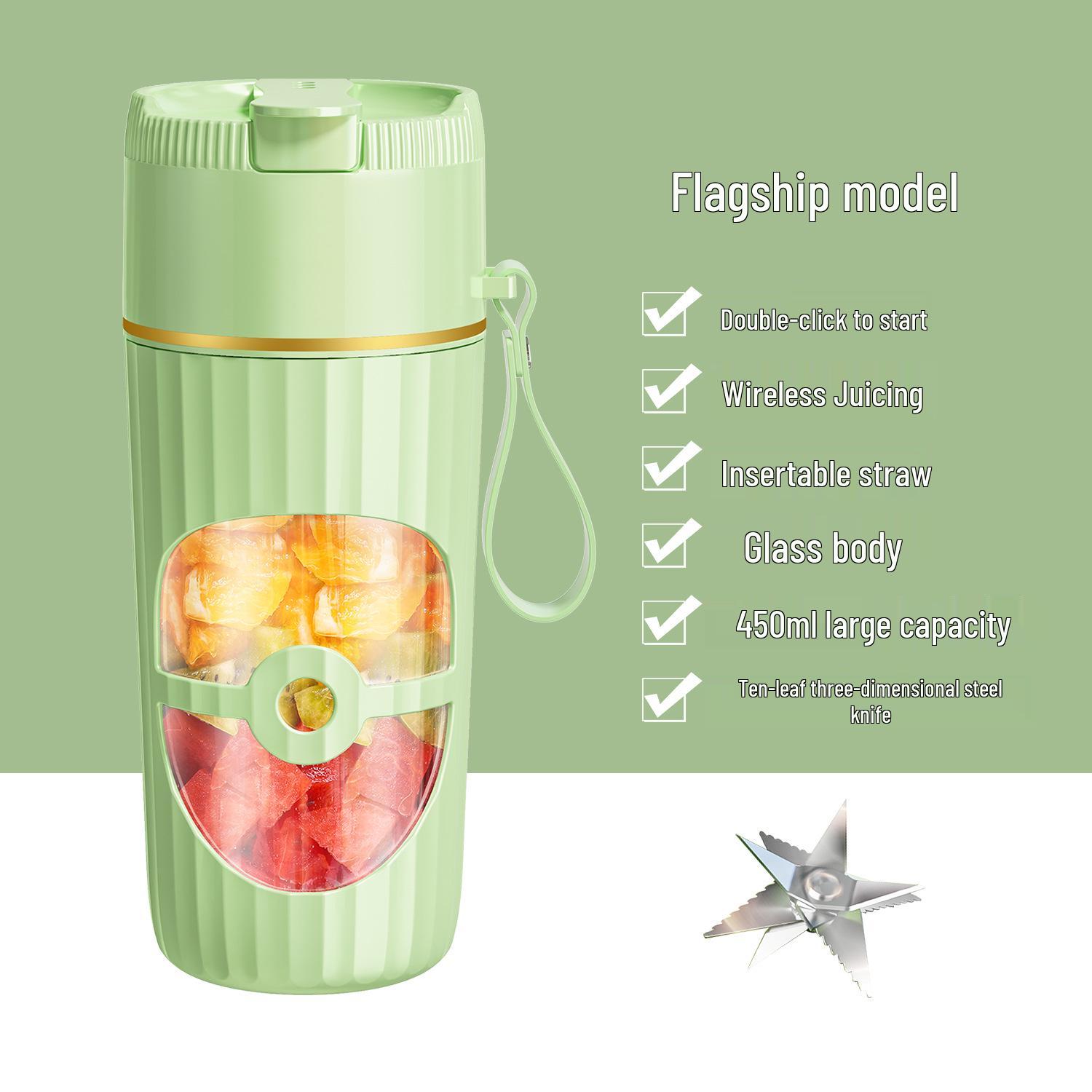 Перезаряжаемая портативная чашка-блендер объемом 450 мл с трубочкой для питья прямо из чашки N58 Ten-Blade Green