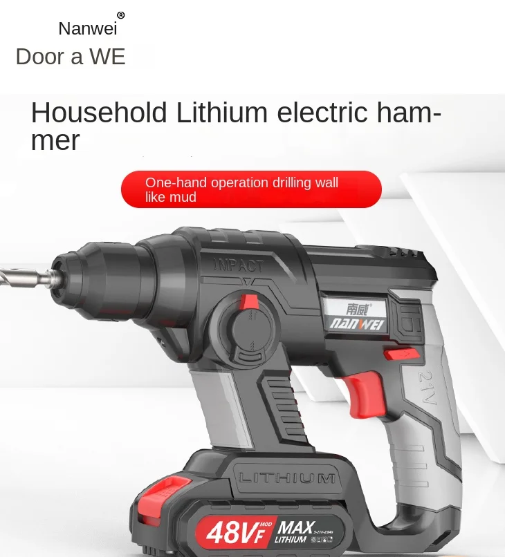 Перезаряжаемый молоток Nanwei, бытовая многофункциональная Ударная дрель, литиевая электрическая дрель, бетонная электрическая отвертка