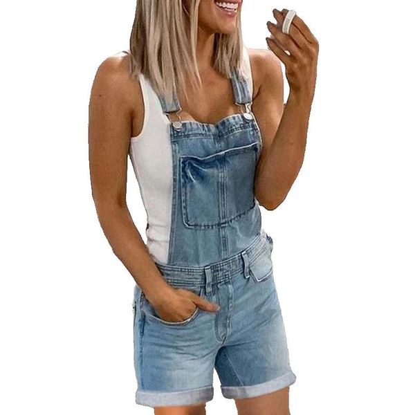 women's jeans wepbel women summer denim shorts pockets overall mid-waist button high waist fashion loose, Blue