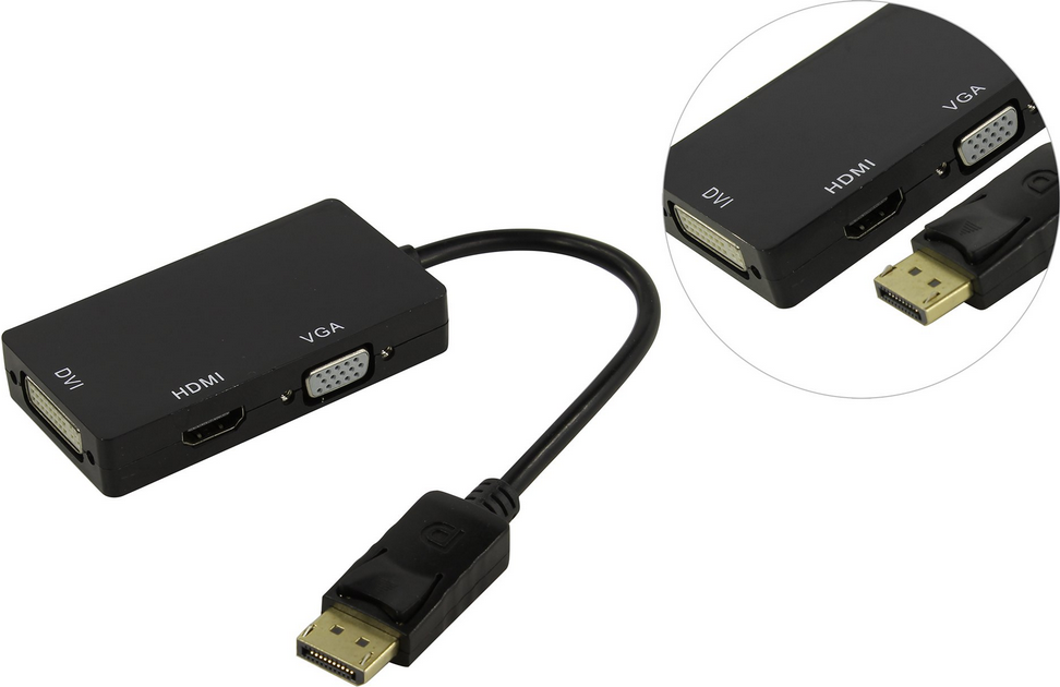 Переходник (адаптер) DVI (29F) / HDMI 19 (F) / VGA (15F)-DisplayPort (M), черный (408064), 0