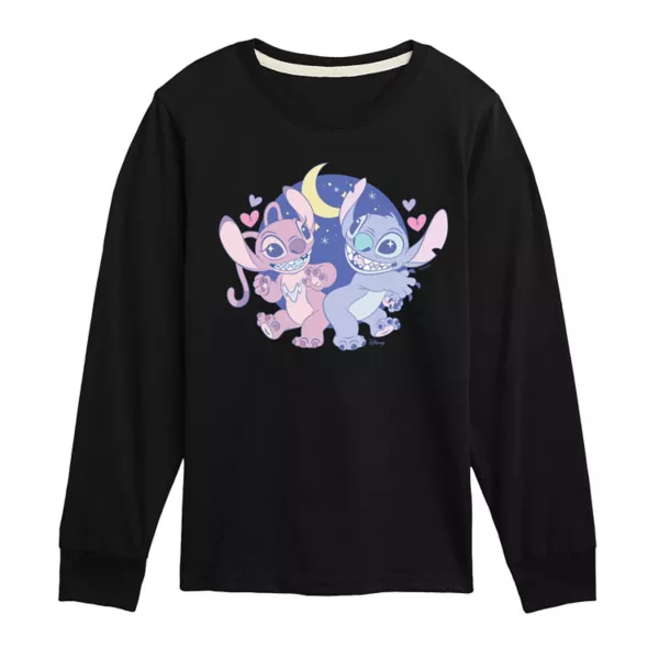 Футболка с длинным рукавом для мальчиков 8-20 лет "Лило и Стич танцуют под луной" Disney, черный