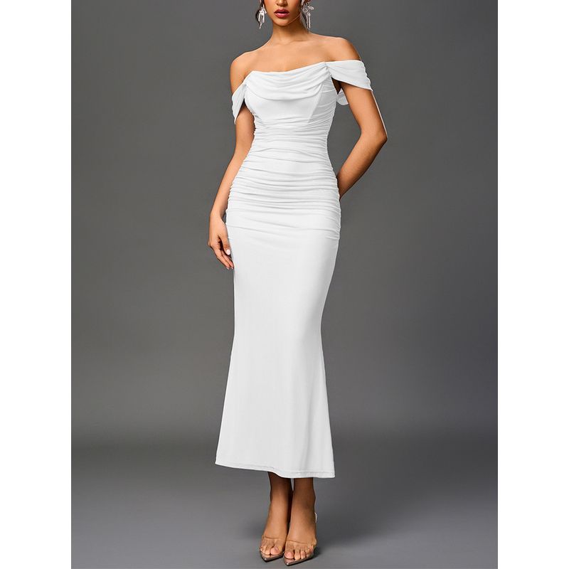 Переходное Сексуальное Европейское и Американское Новое Модное Сетчатое Платье-Корсет с Плиссировкой в Виде Рыбьей Кости Длинное Сексуальное Платье-Футляр без Спины с Открытыми Плечами White M