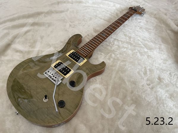 electric guitar with solid flame maple board cnc deep arcboard shape roasted fingerboard and neck abalone bird inlay