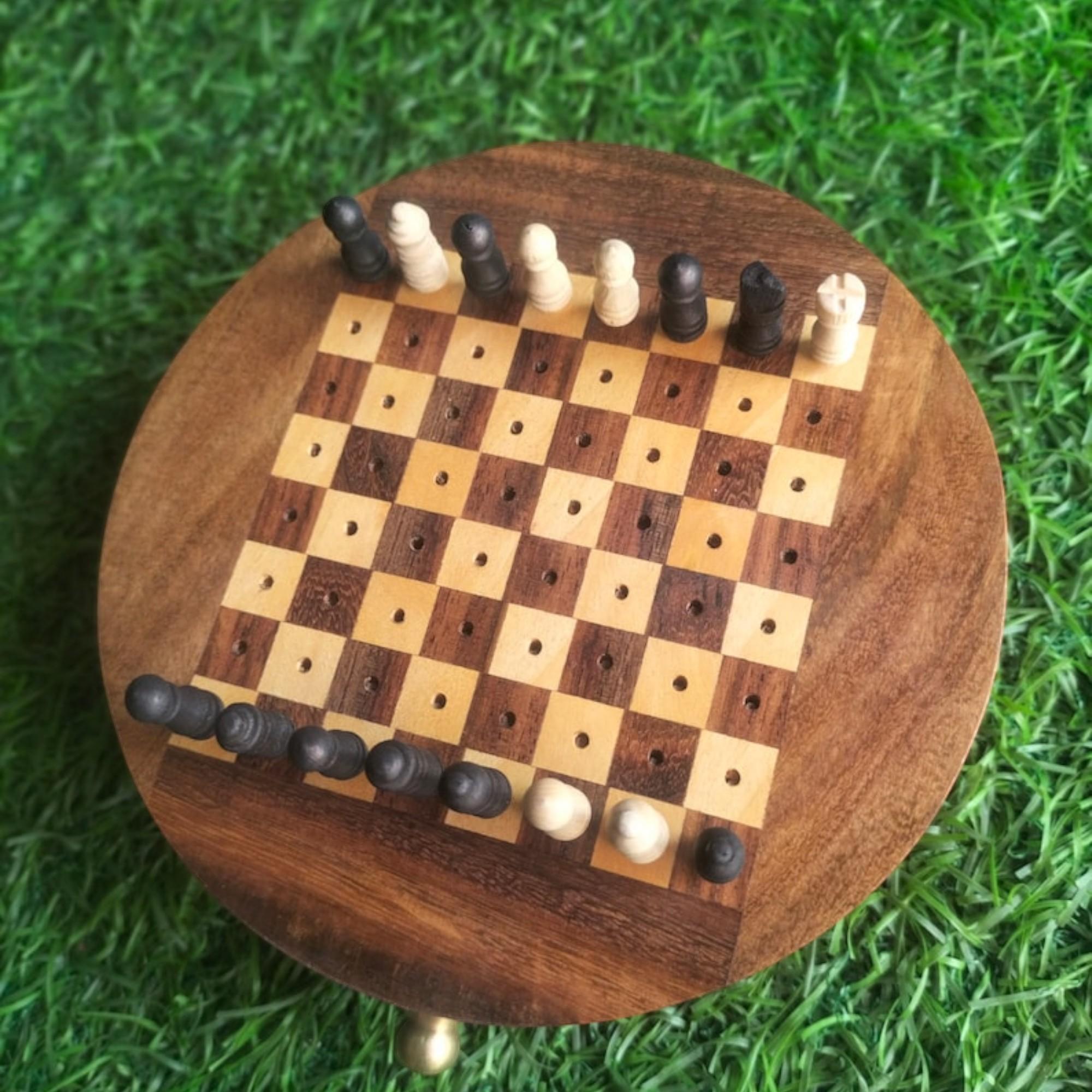 Персонализированная деревянная круглая мини-шахматная настольная игра/карманные шахматы для разминки/лучший подарок/подарок на день рождения/подарок на пенсию