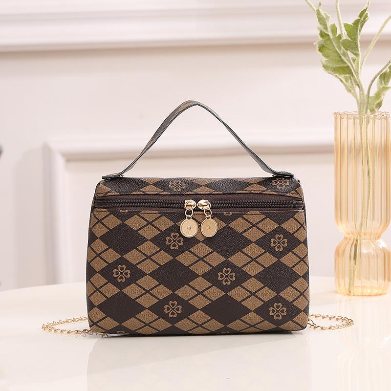 Персонализированная контрастная ромбовидная косметичка модная и милая сумочка с принтом четырехлистного клевера, цепочка на плечо, женская сумка, сумка для мобильного телефона темно-коричневого