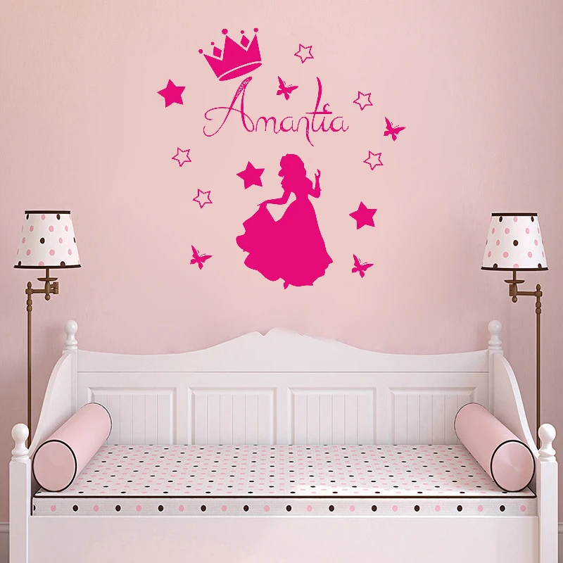 Персонализированная принцесса номер Имя Наклейка на стену под заказ DIY Декор, винил, переводная наклейка для маленьких девочек спальня наст...