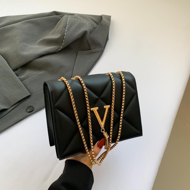 Персонализированная простая цепочка повседневная и красивая маленькая квадратная женская сумка 2024 весна и лето новая модная сумка через плечо сумка-мессенджер чёрный