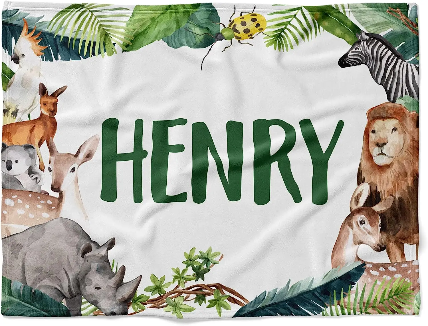 Персонализированное детское одеяло в стиле сафари, детское одеяло в стиле джунглей, сафари для мальчиков, сафари для малышей