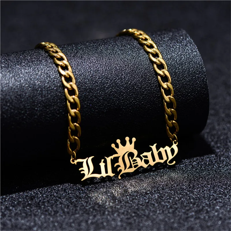 Персонализированное ожерелье с короной и надписью на заказ, модное ожерелье из нержавеющей стали с именем в уличном стиле Майами и Кубы
