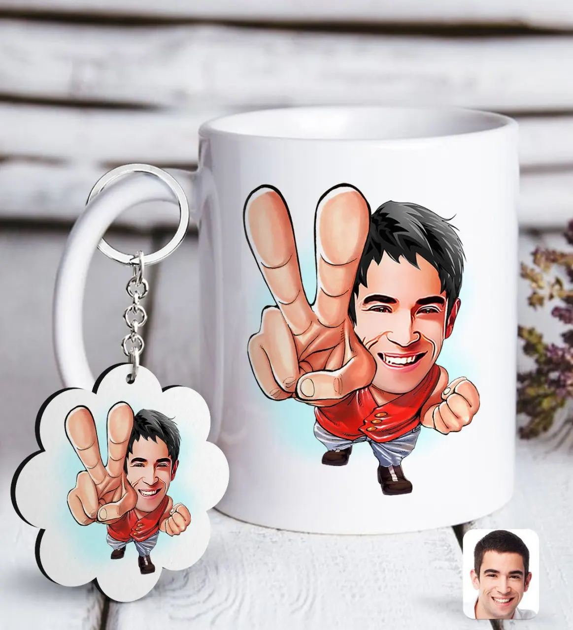 Персонализированные Для мужчин с карикатурой белая кружка и цепочка для ключей Подарочный Seti-33