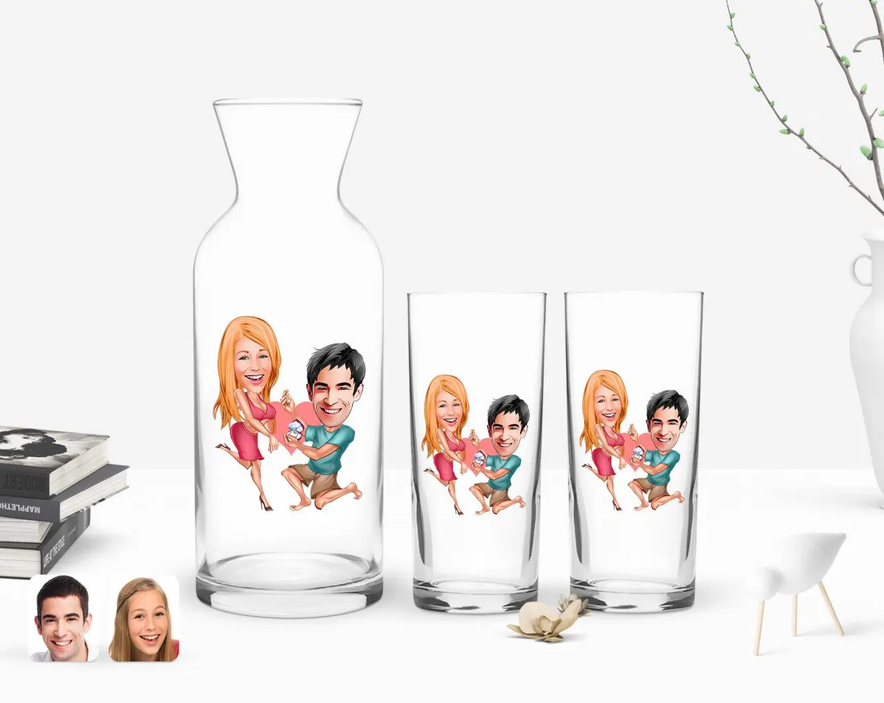 Персонализированный красочный печатный День Святого Валентина карикатура двойной чашки и графин подарок Seti-19
