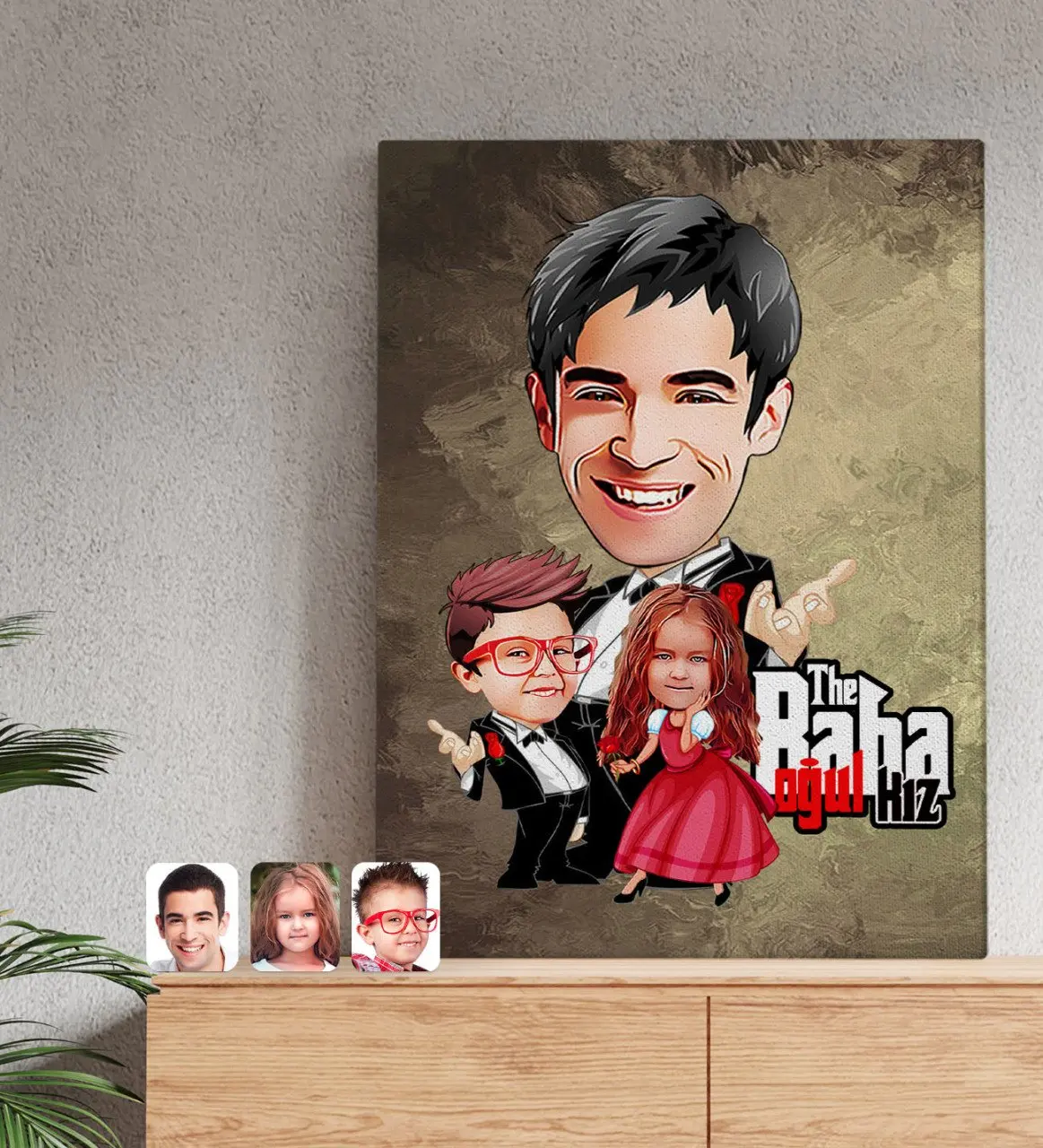 Персонализированный папапа крестного отца, сына и девочка, карикатура на холсте, стол 50x70 см-1, специальный дизайн, подарок для друзей и влюбл...