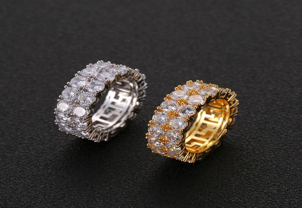 2 rows iced out hip hop rings gold and silver plated cz bling bling tennis ring for women mens jewelry rings1011164