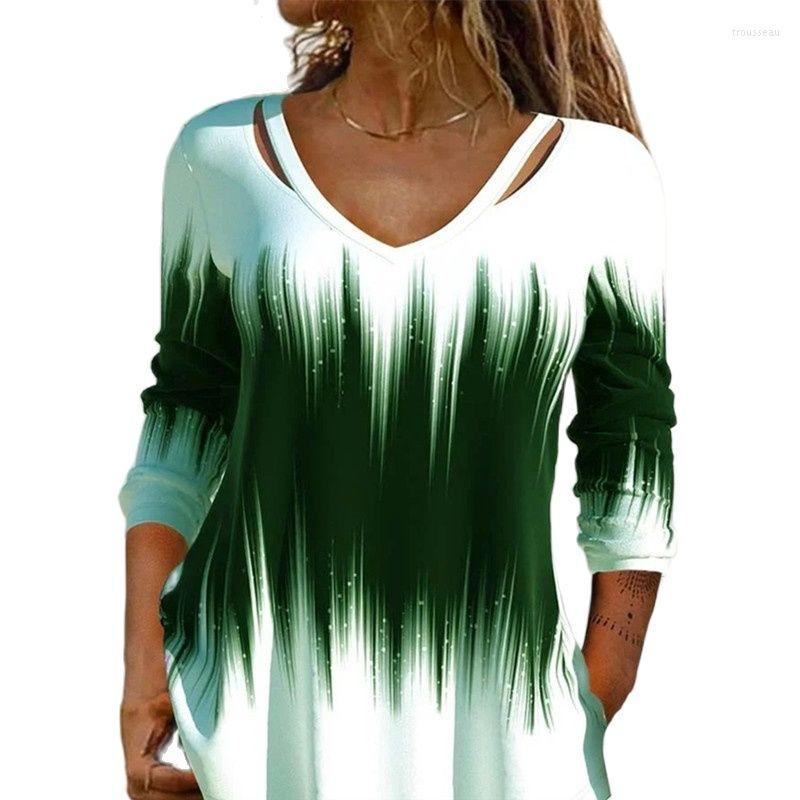 Women' T Shirts Europe And America 2023 Spring Summer Personalized Tie-Dye Color Gradient Long-Sleeved V-neck T-shirt Women, Green
