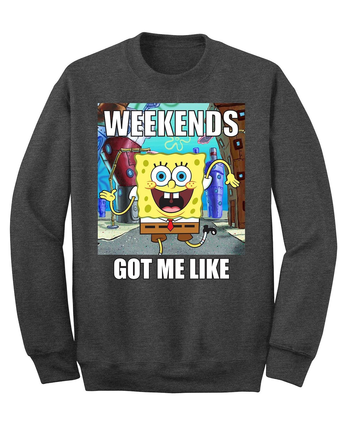 Мужская флисовая толстовка с круглым вырезом spongebob weekends got me like AIRWAVES, черный