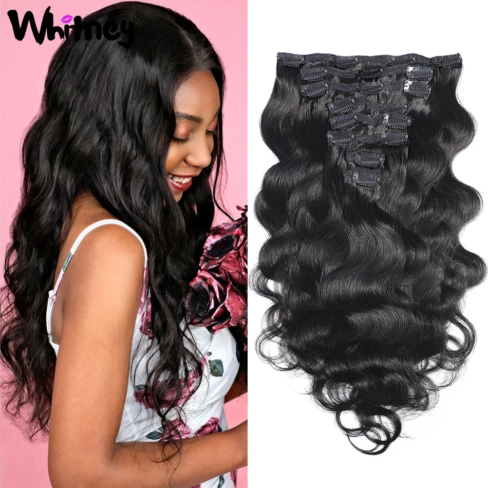 Перуанские волосы, волнистые накладные человеческие волосы, 8 шт./компл., натуральные черные волосы на заколках 8-24 дюйма, 120 г