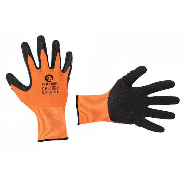 Перчатки INTERTOOL SP-0121 изготовлены из синтетического волокна и связаны бесшовным методом. Покрыты серым рифленым латексом на ладони, обеспечивающим максимально надежное сцепление с предметами при проведении бытовых, строительных и садовых работ. Устойчивы к истиранию и имеют долгий срок эксплуатации. Воздухопроницаемая тканевая основа создает дополнительный комфорт. Читайте также: стойкость перчаток INTERTOOL к механическим и химическим воздействиям