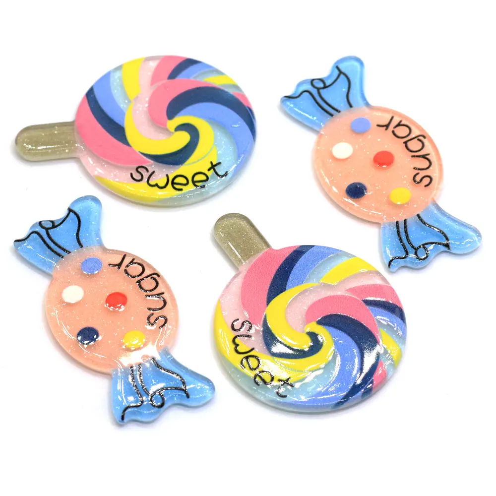 10/50pcs Cute Beauty Kawaii Sweet Spiral Rainbow Lollipop Candy Resin Cabochons Flatback For DIY Phone Decoration