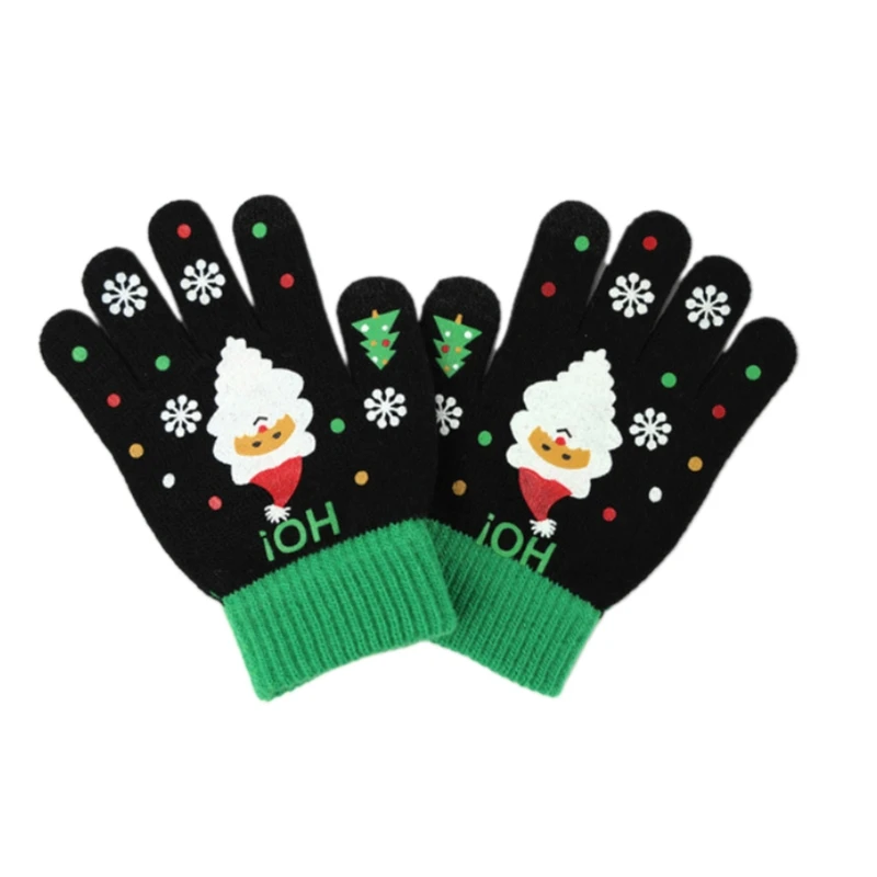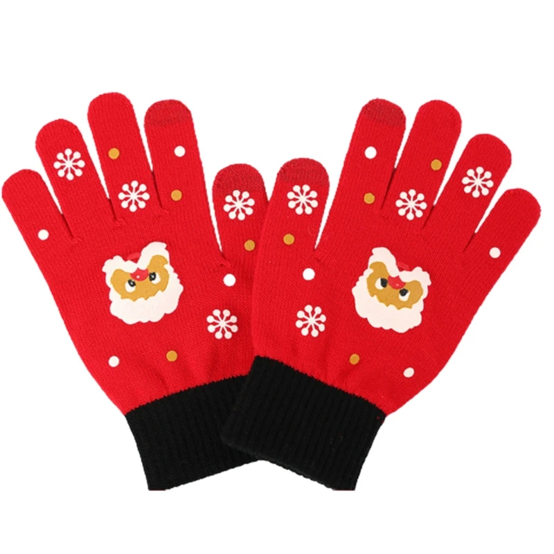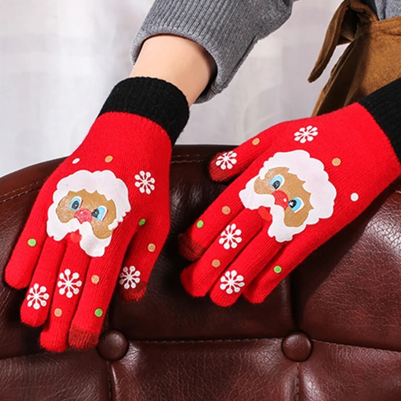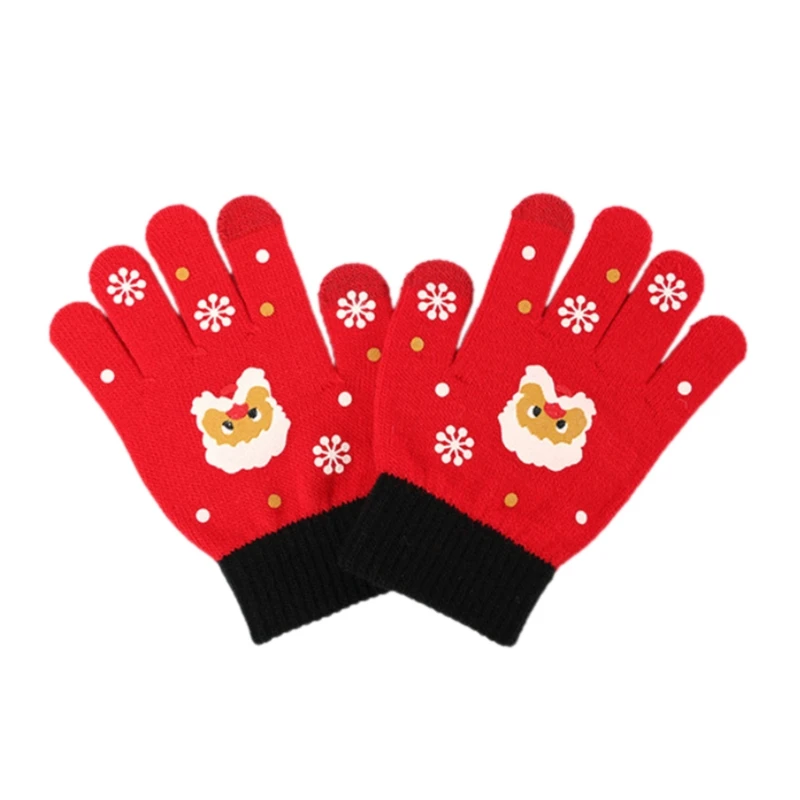 Перчатки для вождения, варежки с пальцами, рождественские перчатки для девочек с милым рисунком Санта Клауса