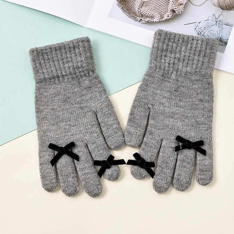 Перчатки для девочек-студенток из шерсти, теплые, корейские, с бантом, однотонные, детские, осенне-зимние, теплые, кашемировые, вязаные, для улицы серый