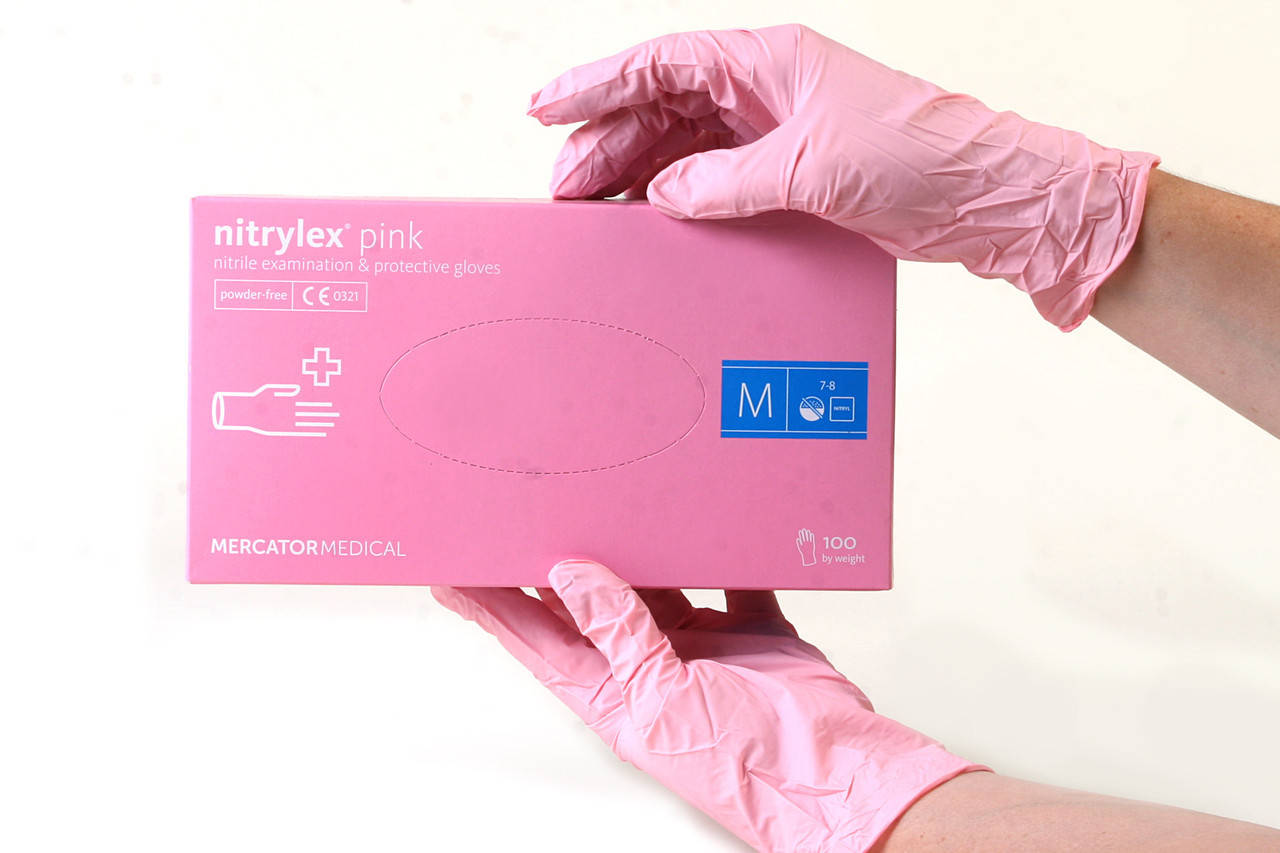 Перчатки нитриловые Nitrylex Pink неопудренные.