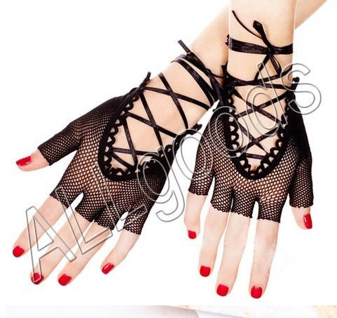 однотонные, ажурные полупальчиковые перчатки, шнуровка на запястье, крест-накрест шнуровка