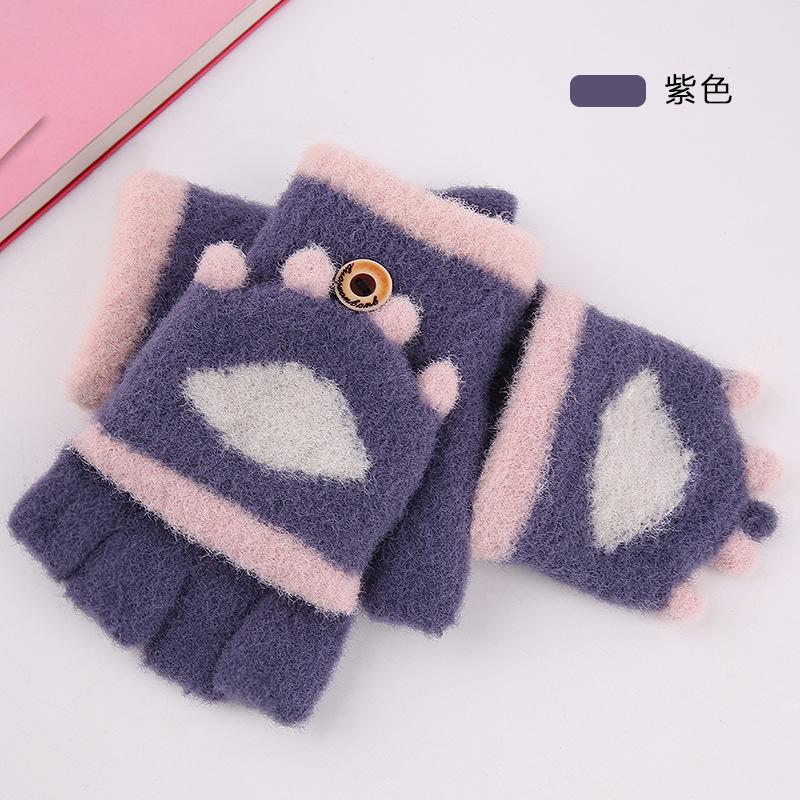 Перчатки-флипы с полупальцами для студентов, зимние шерстяные, для письма, флисовые утолщенные, милые мультяшные, теплые, с открытыми пальцами, детские перчатки Average size