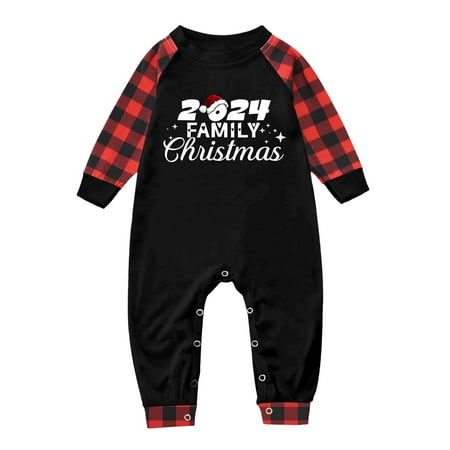 XIEULQP Family Christmas Pajamas Matching Sets 2024 Merry Christmas Printed Family Clothes Matching Family Outfits Long Sleeve Tops Pants Shirt Trousers Set Clearance Sale for Baby 0-3 Months