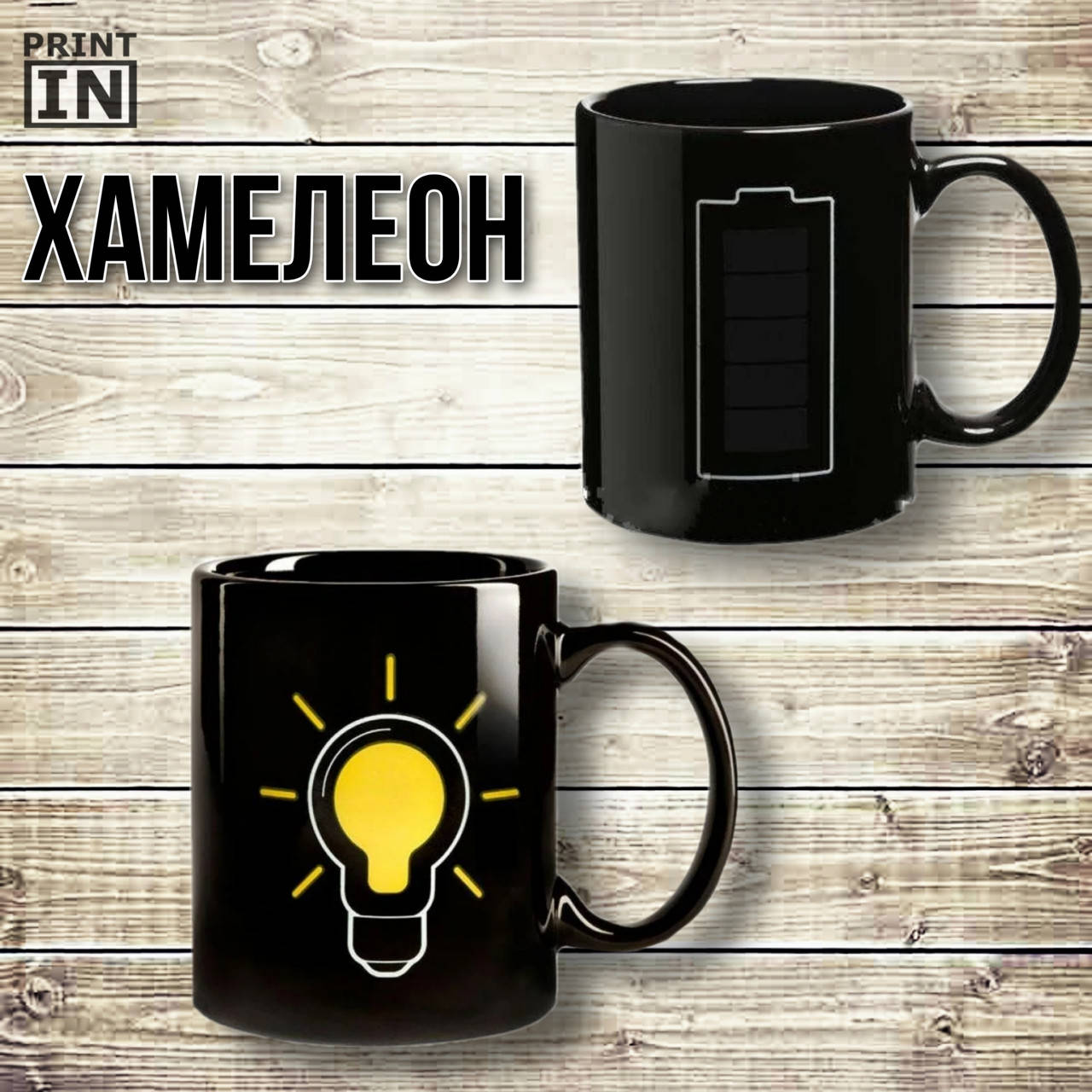 Печать на чашке хамелеон 330мл Без печати, Черный