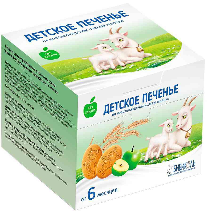 Детское растворимое печенье с яблочным соком для питания детей с 6 месяцев, на новозеландском козьем молоке, 150 г. Польза детского печенья:- Полноценный прикорм, содержащий зерновой и качественный молочный компонент в оптимальном сочетании;- Способствует постепенному и гармоничному переходу на общий стол;- Формирует правильное пищевое поведение и не вызывает привыкания к сладкому;- Помогает прорезыванию зубов и формирует навык удерживания предметов- Содержит витамины группы В, витамин С и минералы.Удобство:- Отдельные порционные flow-паки;- Возможность употребления разведенным в молоке до кашеобразной консистенции.Безопасность:- Печенье для детского питания не содержит добавленного сахара или искусственных подсластителей;- Все ингредиенты безопасны и подходят для питания детей с 6 месяцев;- Легко растворяется в случае проглатывания больших кусочков;- Крупная форма позволяет ребенку легко удерживать печенье и препятствует проглатыванию целиком.Ваш малыш вырастет здоровым!