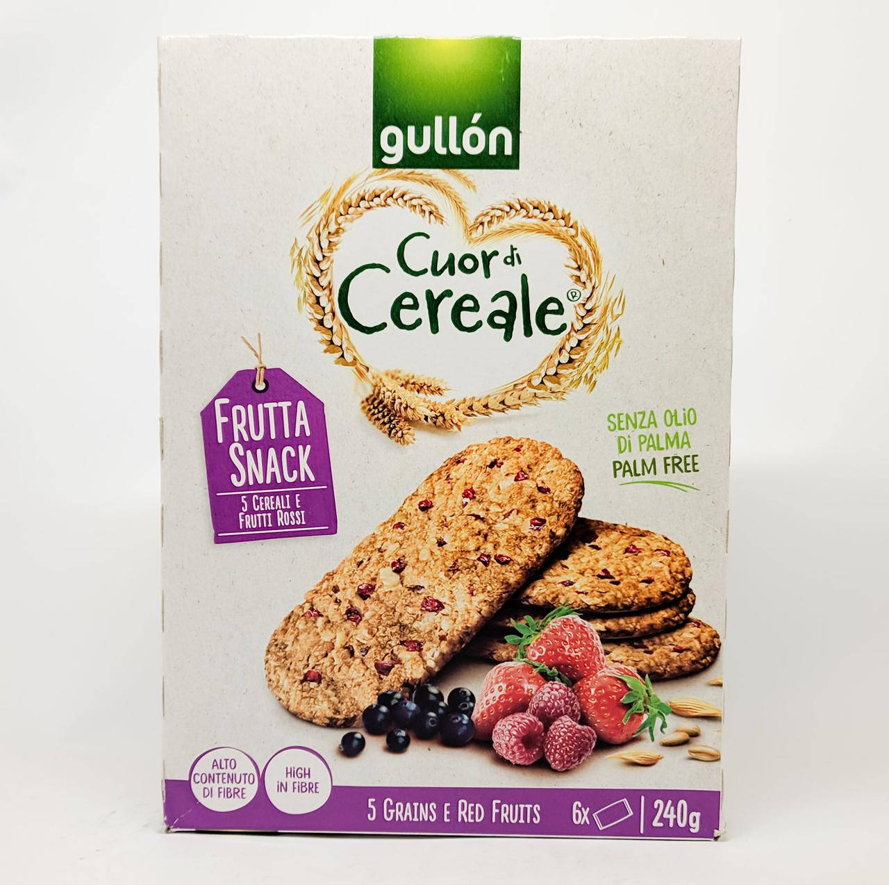 Злаковое печенье с частичками фруктов Gullon Cuor di Cereale Frutta Snack (Гуллон фрутта снек) классическое злаковое печенье для завтраков и повышенных содержанием злаковых и частичками фруктов.