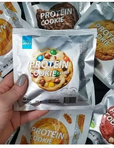 Склад: борошно пшеничне, бананове борошно, сироватковий протеїн, казеїновий протеїн, пюре банана, білок яєчний, масло вершкове, сода, стевія, цукерки фігурні:(цукор. какао терте, сухе молоко, лактоза, какао олія, емульгатор ванілі, барвники: куркумін, червоний буряк, е171,е172,е133)