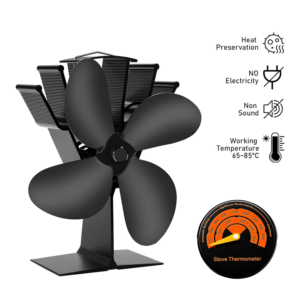 4-лопастные стандартные вентиляторы для камина, деревянная горелка, экологически чистый тихий вентилятор для домашнего эффективного распределения нагрева