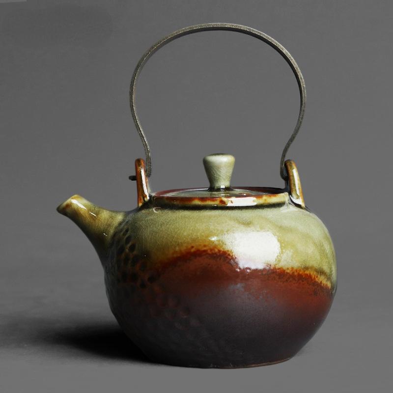 Печь в японском стиле, замененная на медную ручку, чайник с балкой, ретро-керамика, грубая керамика, чайная церемония кунг-фу, заварочный чайник на одну чашку