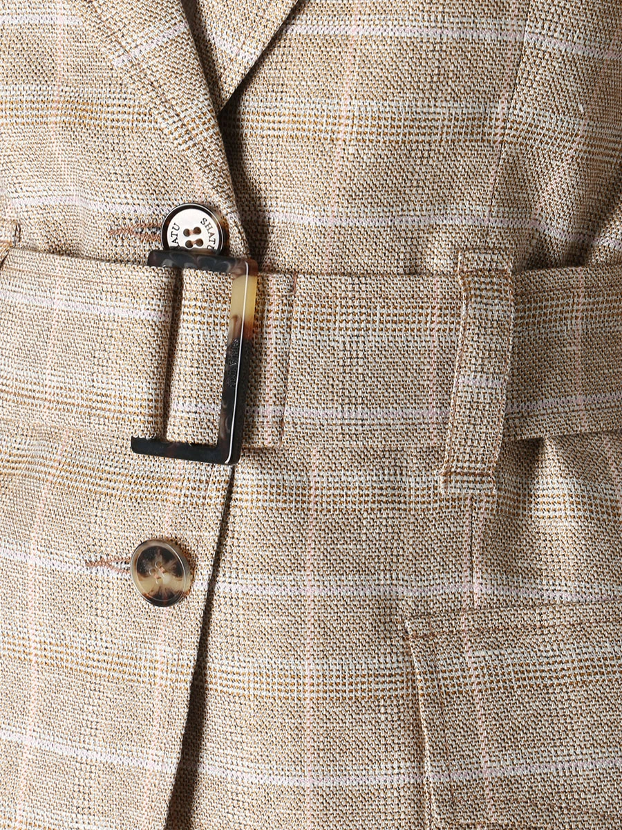 -Бежевый клетчатый пиджак из микса вискозы и льна от SHATU.