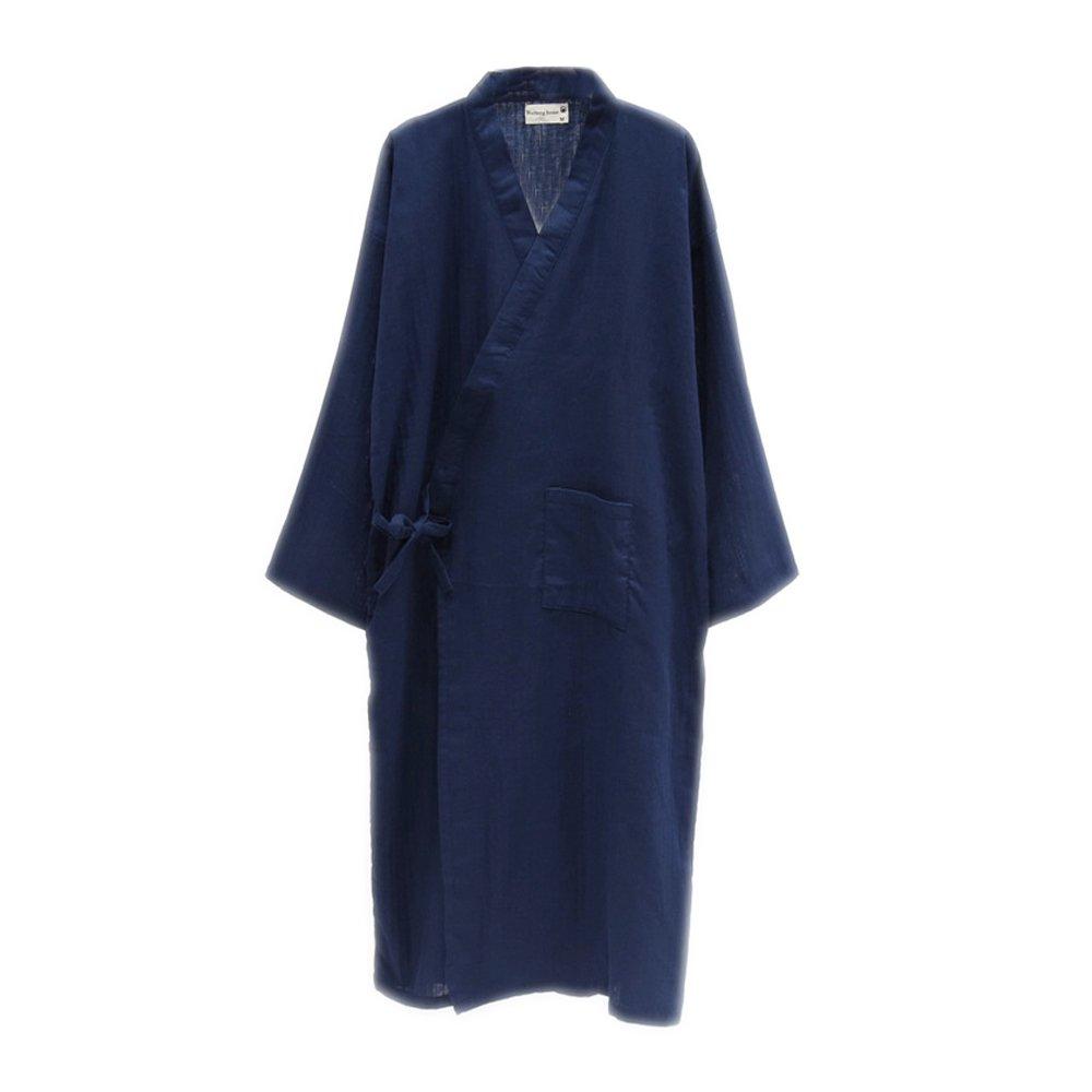 Пижама Джинбей в стиле «Полуночной закусочной», однотонная пижама в японском стиле, юката в клетку, кимоно в японском стиле с запахом, домашняя одежда, стильная модель синий
