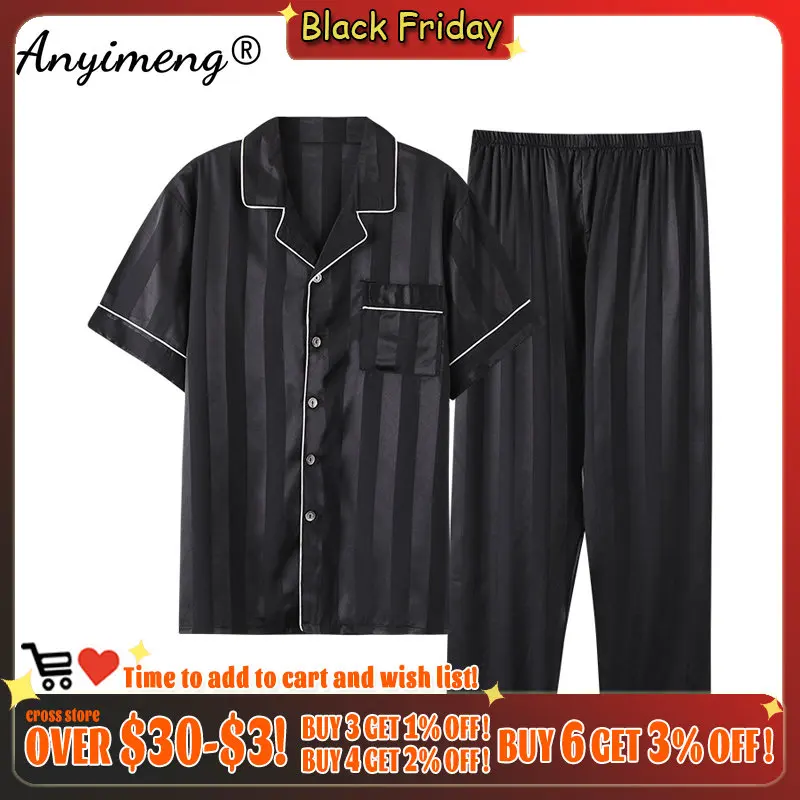 Пижама Мужская, летняя, с коротким рукавом, длинными штанами, с отложным воротником