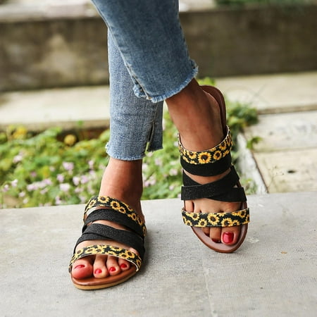 Hvyesh Flat Sandals for Women Casual Summer Summer Fashion Sandals Hollow Flat Sandals Round-toe Color Matching Slippers Size 6