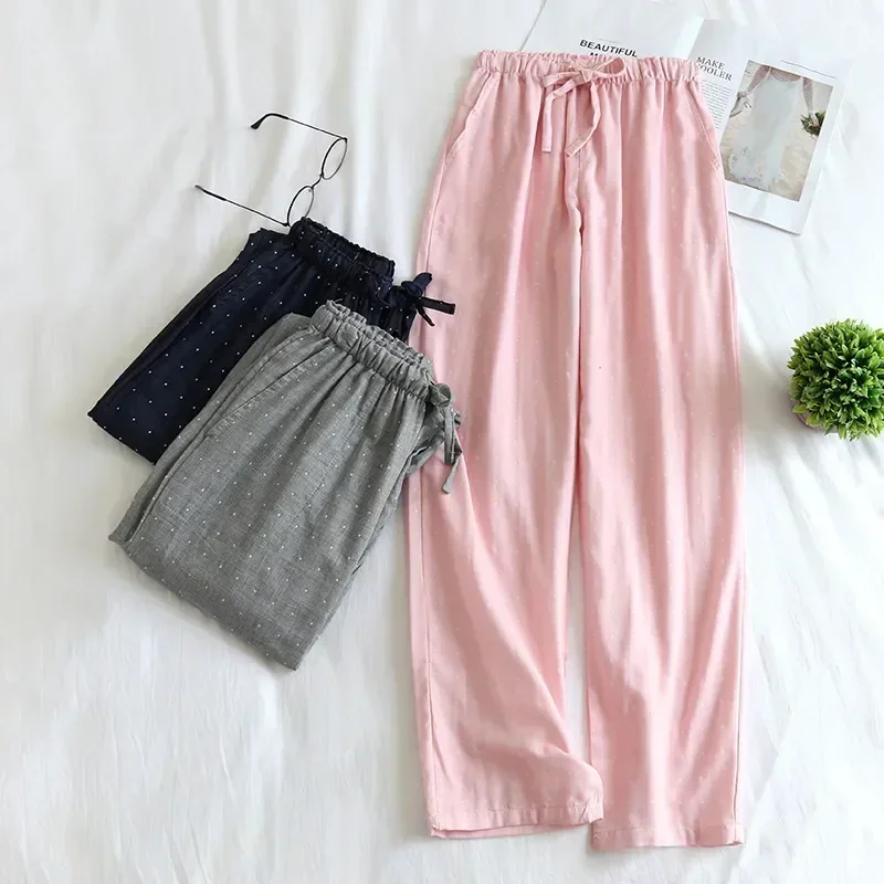 Пижама в горошек для мужчин и женщин, хлопковая тонкая одежда для сна, длинные брюки в горошек, весна