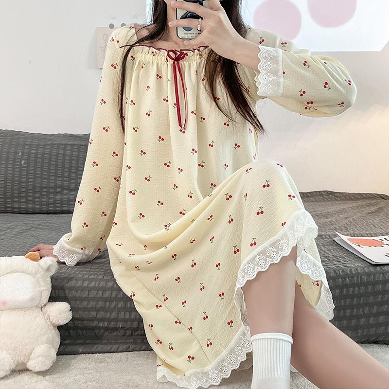 Пижама в стиле принцессы из чистого хлопка для женщин, весна и осень, ночная рубашка с длинными рукавами для девочек, новая свободная повседневная пижама 2XL жёлтый
