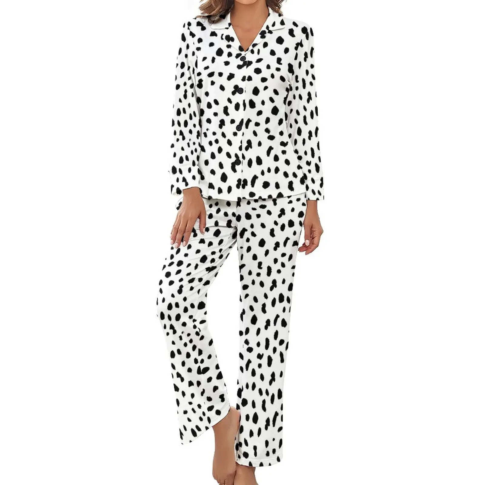 Пижама далматинская с принтом собаки, женская черно-белая Милая одежда для сна, весенние пижамные комплекты из 2 предметов с длинным рукавом и V-образным вырезом для отдыха