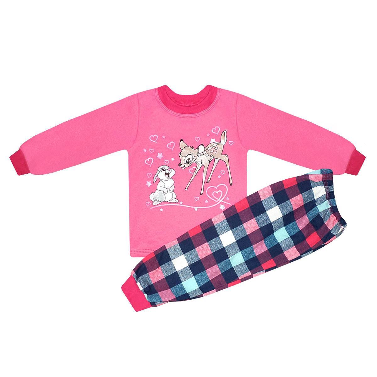 Трикотажная пижама для девочек. Материал - начес. Материал обладает приятной на ощупь, нежной текстурой, с гладкой поверхностью как с наружной, так и с изнаночной стороны. Аккуратно садится по телу, не обтягивает. Длинные рукава, с манжетами на резинке и классический круглый вырез горловины. Цвет: комбинированный.