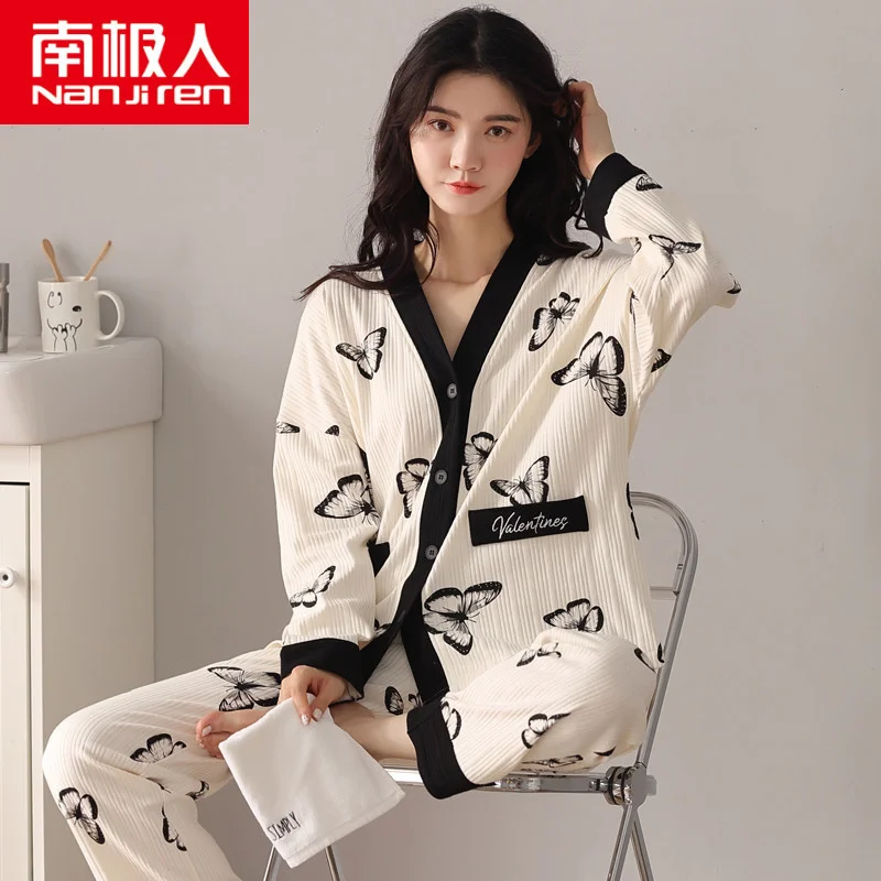 Пижама для женщин, комплект из 2 предметов, новинка 2021, пижама Nanjiren, Женская весенне-осенняя хлопковая свободная домашняя пижама с длинным ру...