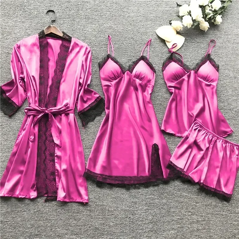 Пижама женская атласная с шелковыми вставками, на бретельках