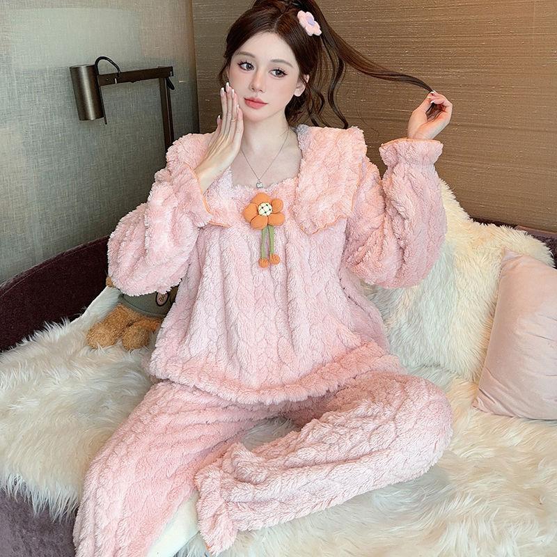 Пижама женская осенне-зимняя интенсификация коралловый флис очень большой размер милый фланелевый теплый домашний комплект одежда для сна женская 5XL