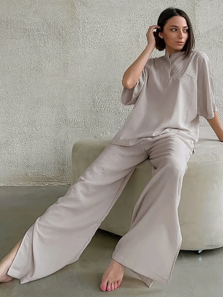 Пижама женская свободного покроя из 2 предметов, с круглым вырезом и коротким рукавом