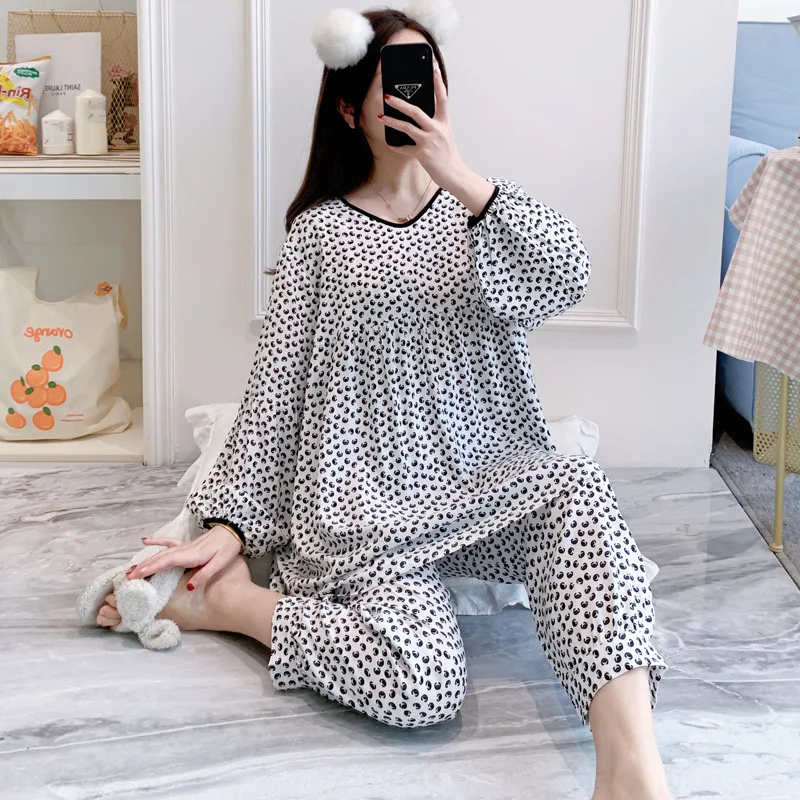 Пижама женская с длинным рукавом, тонкий хлопковый Шелковый комплект с принтом, одежда для дома, весна-осень 2023